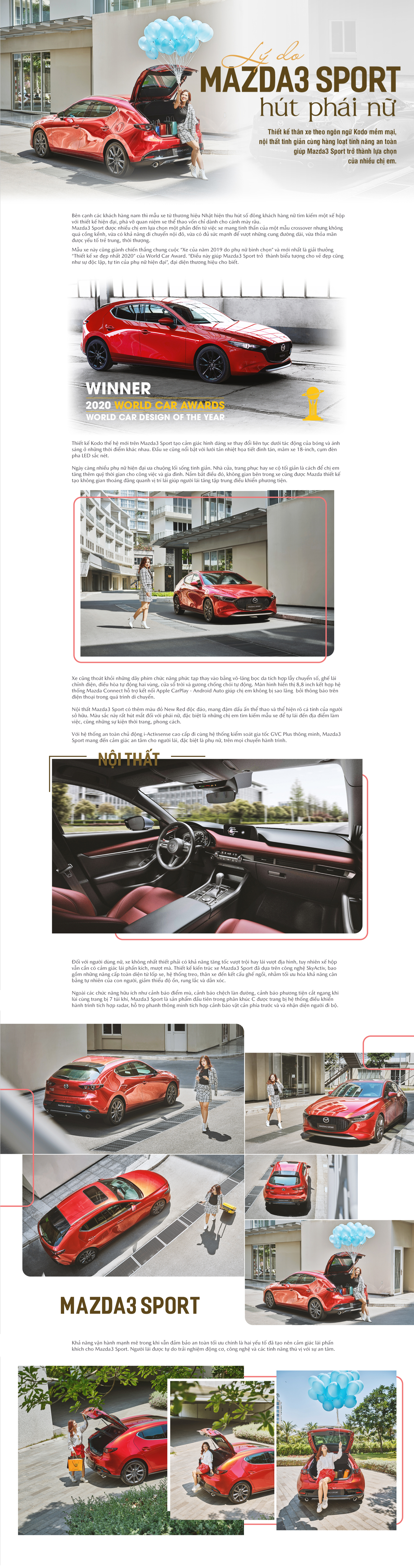 Theo khảo sát mới nhất, nhiều khách nữ ấn tượng ngoại hình đậm nét thể thao năng động, nội thất da bọc đỏ của Mazda3 Sport.