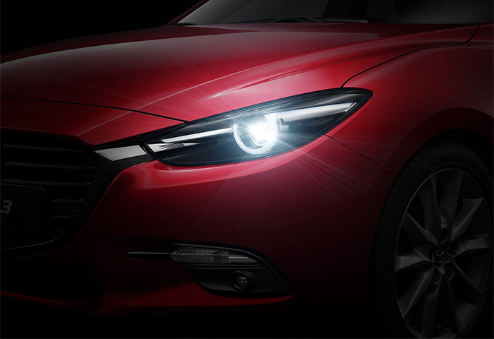 Mazda3 phiên bản cao cấp còn được trang bị màn hình HUD đa sắc hiển thị thông tin trên kính lái, công nghệ LED thích ứng thông minh AFS giúp điều chỉnh góc chiếu sáng khi đánh lái, khẳng định đẳng cấp khi là mẫu xe duy nhất trong phân khúc C được trang bị các tính năng đáng giá thường chỉ xuất hiện trên xe hạng sang.