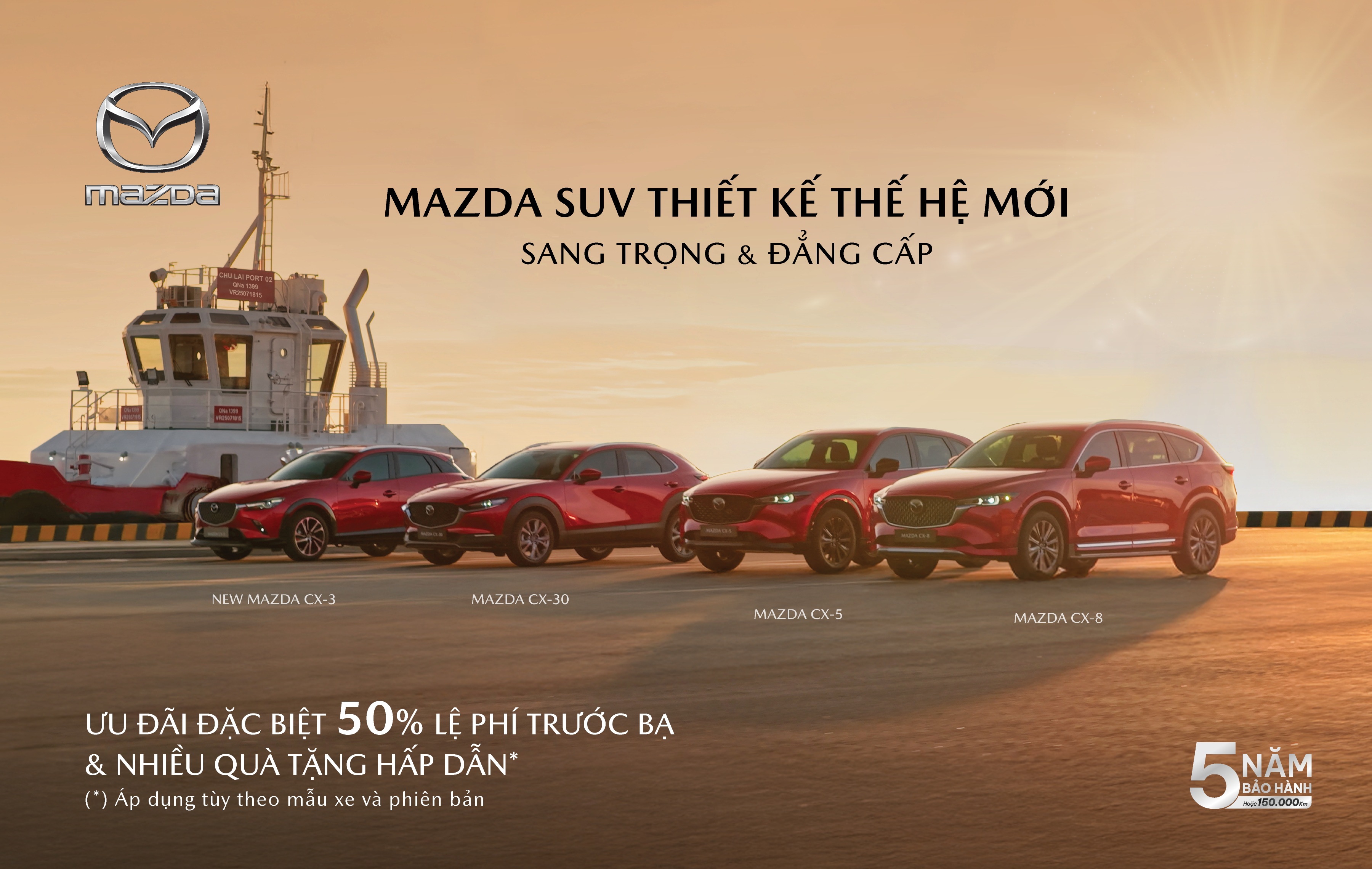 Bên cạnh ưu đãi đặc biệt lên đến 50 triệu đồng, Mazda còn mang đến những giá trị vượt trội về dịch vụ và trải nghiệm sở hữu. Chương trình ưu đãi được áp dụng tùy theo mẫu xe, phiên bản và khu vực.